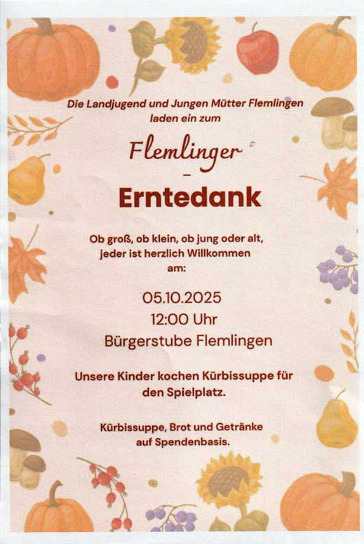 In Flemlingen ist die Saison der Feiern in vollem Gange. Gestartet hat sie mit dem Kleinkunstverein, der eine Lesung im März von Emile Zola inszeniert hat, gefolgt von der Landjugend, die am 6. April Dampfnudel wie bei Oma gebacken haben, gefolgt von den Feuerwehrfreunden, die am 30. April den Maibaum stellten.